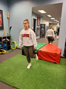A great exercise to work on balance for golfers is the single-leg balance weight transfer exercise. Standing on one leg challenges your balance, forcing your stabilizing muscles in the ankle, knee, and hip to engage. As you shift the weight hand to hand, you further enhance your body’s ability to stay steady, which is crucial for consistent ball striking.
