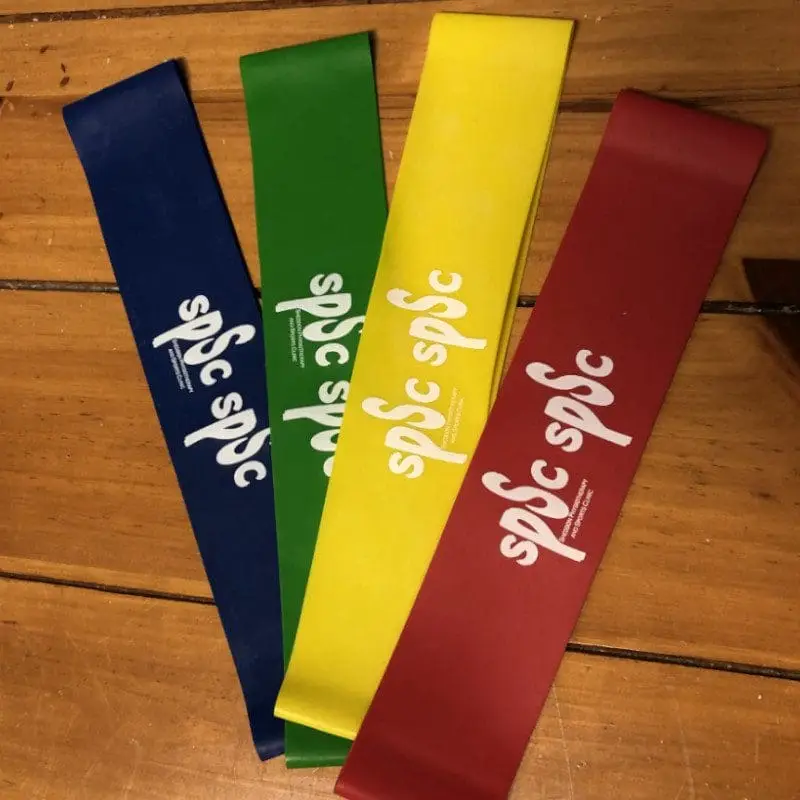 Latex rubber band that can be used for mobility and strength exercises. Can be used to strengthen muscles of the hip, knee, shoulder and other joints.